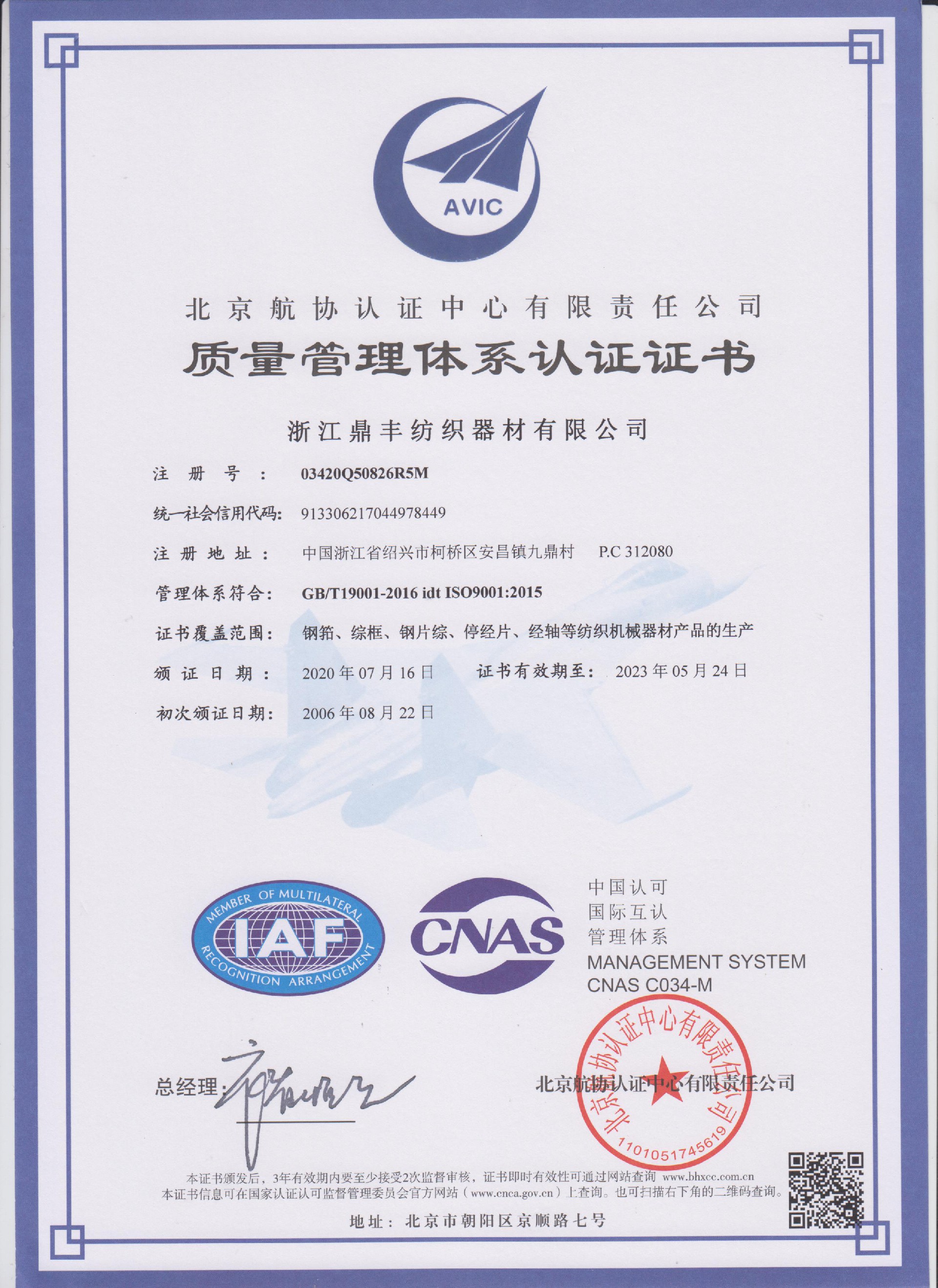 1、貴公司是一家專業(yè)生產(chǎn)各類無梭織機(jī)鋁合金鋼筘、綜框、鋼片綜、停經(jīng)片、經(jīng)軸、織軸和卷布輥等產(chǎn)品及配件的民營企業(yè)。公司成立30多年迅速發(fā)展、占領(lǐng)市場的秘決是什么?余定雅:是高品質(zhì)的產(chǎn)品,完善的售后服務(wù)和大規(guī)模的生產(chǎn)能力保證了浙江鼎豐紡織器材有限公司的產(chǎn)品銷售量在國內(nèi)獨(dú)占鰲頭。為了與全球市場經(jīng)濟(jì)接軌,鼎豐紡